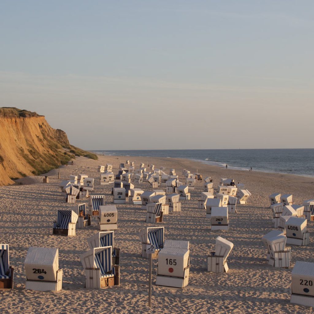 Ähnlich und doch anders gestaltet sich die Sache in Kampen. Natürlich ist auch dort bestens für die Verköstigung und sanitären Bedürfnisse gesorgt, allerdings sind die Wege unter Umständen ein wenig weiter. Wer das umgehen möchte, der sucht sich einen schönen Platz direkt am Hauptaufgang – hier gibt es die meisten Strandkörbe, das Bistro ist nicht weit und die Toilettenanlage ist nur wenige Meter entfernt. Schlägt man den Weg nach rechts ein, dann entfernt man sich immer mehr vom trotz allen Trubels recht ruhigen Kampener Hauptstrand und landet flugs in einsamen Landen. Bis zur „Buhne 16“, einem wunderschön gelegenen Bistro mitten in den Dünen, kann man problemlos schlendern und dabei einfach mal die Zeit vergessen. Übrigens muss, wer seinen Tag am Meer gern in einem Strandkorb verbringt, das nicht unbedingt auf dem Sand tun. In Kampen hat man die Möglichkeit, sich einen der Strandkörbe auf der großen Holzplattform am Hauptaufgang zu sichern. Mieten muss man die Körbe eigentlich nur innerhalb der Hauptsaison, ansonsten stehen sie kostenfrei zur Verfügung. Kostenlos sind die schönen Holzbänke auf der Plattform, auf denen man das Treiben am Strand ebenso gut beobachten kann.