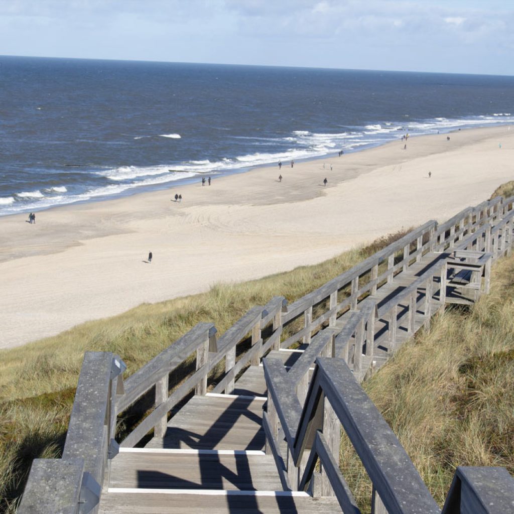 Wenningstedt bezeichnet sich seit jeher als „Familienbad“, und das spiegelt auch der breite Strand wieder. Betritt man diesen über die Haupttreppe, landet man in einer bunten Strandkorbsiedlung, in der es sich nicht nur wunderbar relaxen, sondern auch prima spielen lässt. Direkt an der Haupttreppe befindet sich ein kleines Bistro, das Pommes, kleine Gerichte und natürlich Eis anbietet. Auch sanitäre Anlagen sind hier zu finden – vor allem für Eltern mit kleinen Kindern ein echtes Plus. Entlang der Wenningstedter Promenade laden Gosch, leckeres Eis vom iismeer, ein Crêpesstand und ein Minigolfplatz zum Schlemmen und Spaß haben ein. Und wenn man wieder hinunter zum Strand möchte, können kleine Besucher diesen Weg seit einiger Zeit auf ganz besondere Art und Weise zurücklegen: Neben der großen neuen Haupttreppe führt auch eine schnelle Röhrenrutsche auf den Strand – für die Kleinen ein echtes Highlight.